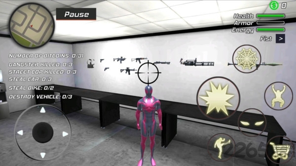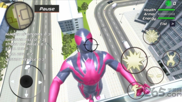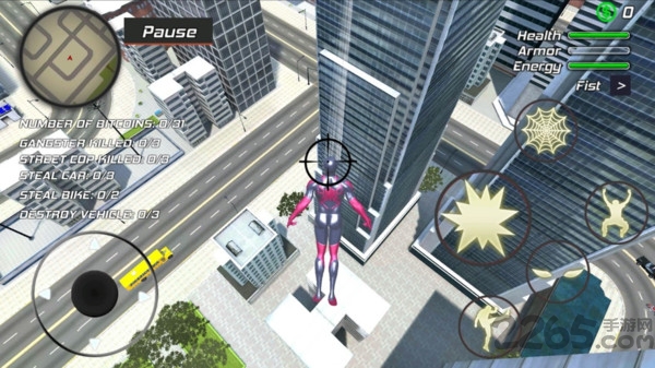 2、利用蜘蛛侠灵活的身姿,在各大楼宇建筑之间穿梭,躲避攻击的同时进行反击;