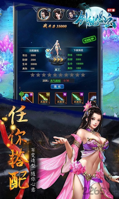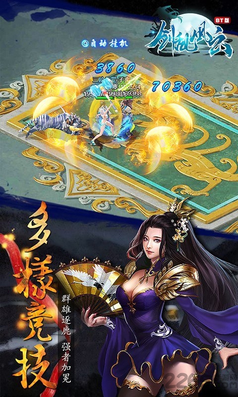 剑乱风云bt版游戏画面以想象为基调,力求营造出梦幻唯美的效果,再现人魔仙三界迥然不同的场景风格;游戏内容主要包含挂机和玩法两部分,通过自动挂机解放玩家双手,让玩家将更多的精力放于体验玩法上;同时又创新地把刀剑扇三种职业集于一身,将家族战、抢夺BOSS、排位等竞技类玩法充分放大,让玩家轻松享受PK乐趣。