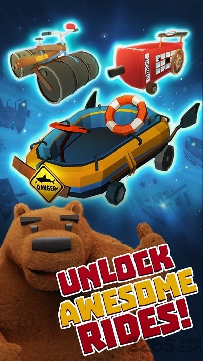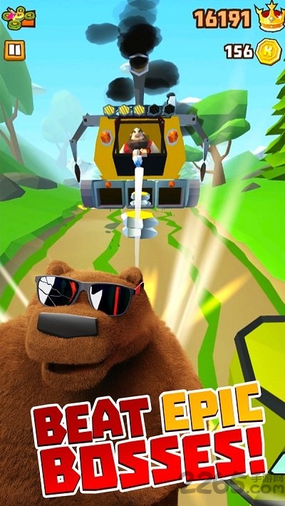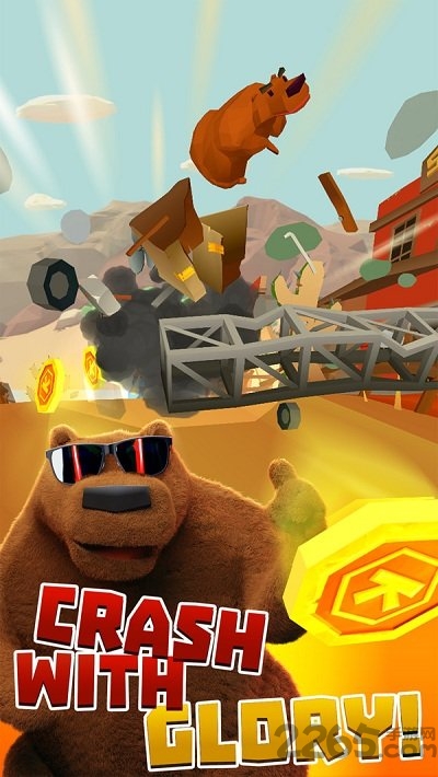 棕熊森林跑酷是休闲游戏,需要操作开着小车的棕熊进行跑酷冒险,将一边跑酷的同时,一边与人类战斗,收集沿途的金币,升级你的小车,尝试着创造更搞的记录吧!游戏中玩家们需要在森林里横冲直撞阻碍那些企图破坏森林的人类!喜欢这款游戏的玩家们。玩家这次扮演一个五大三粗的大棕熊,带着墨镜,一副社会大哥的模样,开着各式超出你想象力的载具在森林里一路冲撞,破坏人类的各种计划,但是要注意注意躲避人类的机关。