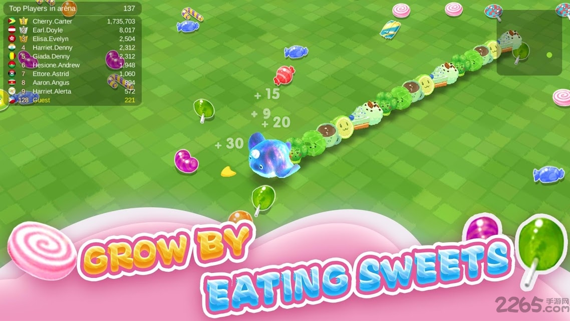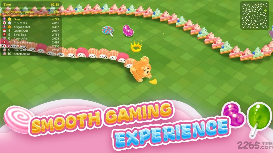 甜蜜穿越蛇蛇大作战最新版是一款以贪吃蛇玩法为核心的休闲io游戏,游戏中玩家们将选择不同的动物来参加比赛,不断的吞噬甜食,获得最高的积分,赢得比赛.感兴趣的朋友可以来下载.