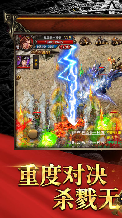 掌上千人攻城,打爆世界BOSS宝物满屏掉落,兄弟同盟团战畅爽即时PK;