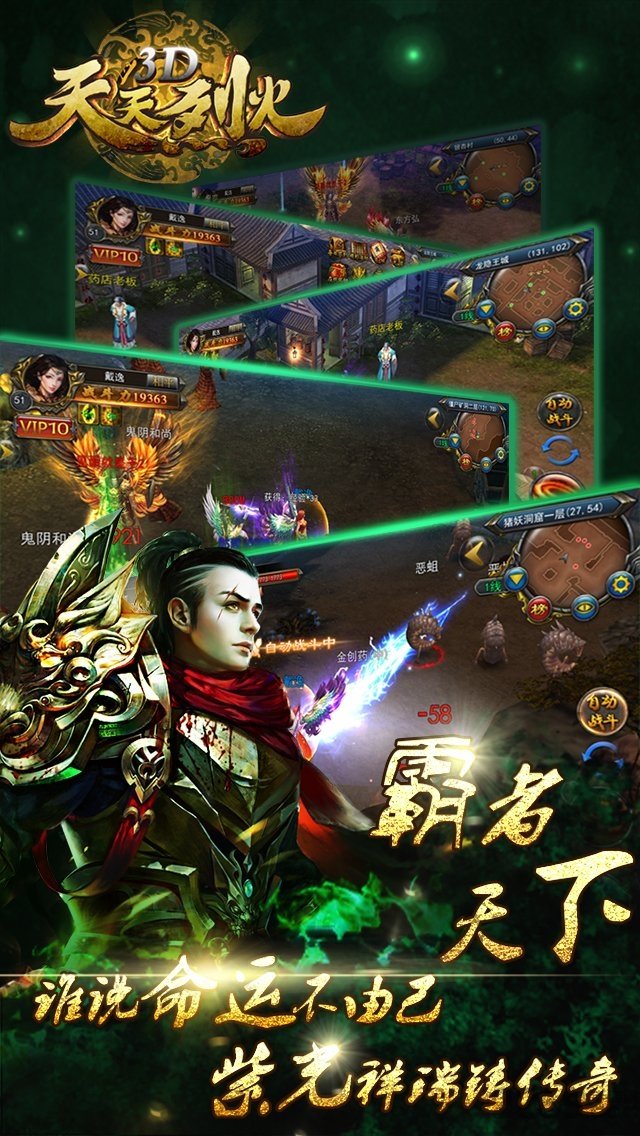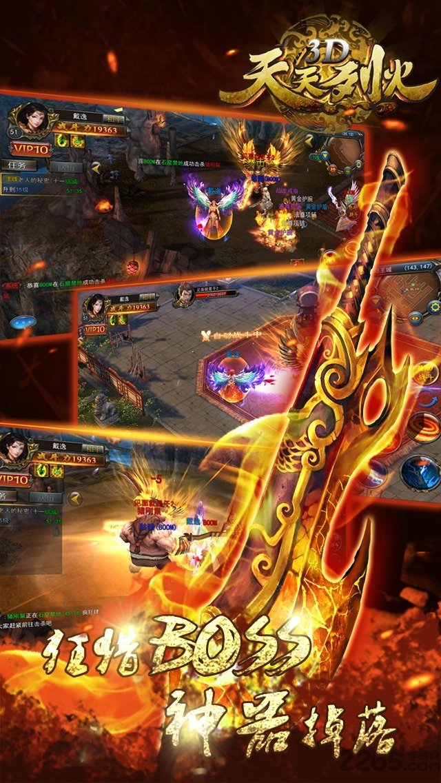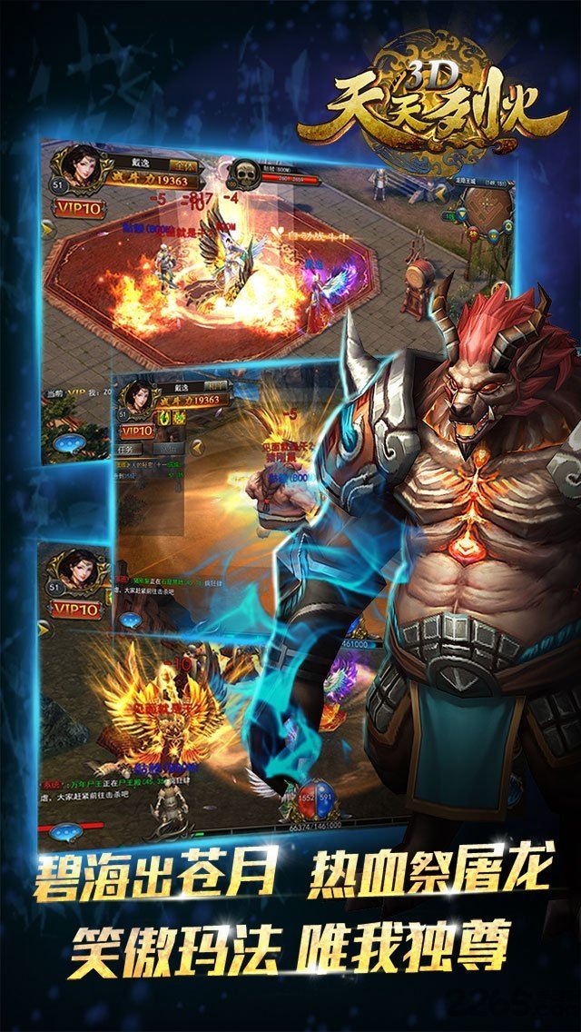 《天天烈火3D》是一款3D次世代重度mmorpg手游。用户在游戏中将与战士、法师、道士三大职业英雄结为联盟,共同对抗迷失的半兽人,夺回被占领的玛法大陆。超爽的打击感,精美的画面,丰富的系统,以及团战等玩法的融入,将为你带来一段极致体验的传奇之旅。