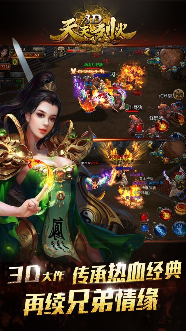天天烈火3d无限元宝破解版是一款延续传奇经典玩法的mmorpg动作手游,游戏以传奇的三大职业为核心,画面精致超清,战斗玩法多样,玩家在华丽的战斗特效中可体验招招暴击的快感。赶紧来下载试玩呗。