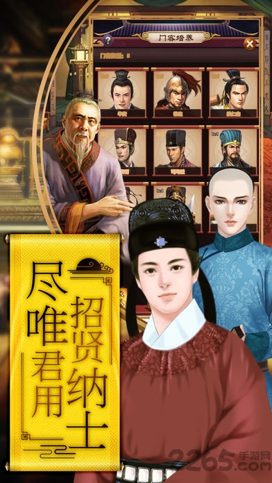庞大的门客养成系统,海量的历史名将贤士,任你自由招募,组建专属你个人的智囊团队。真实的 模拟养成,让你的每个门客都是独具一格的。