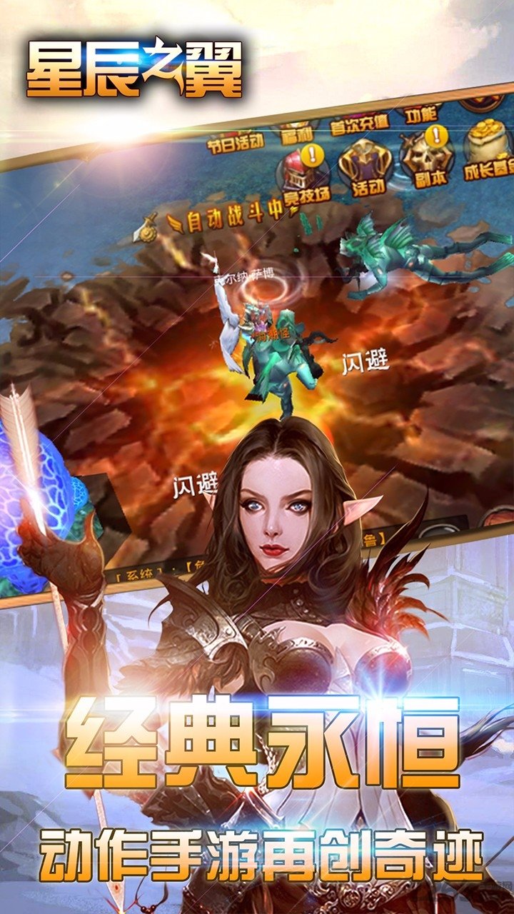 《星辰之翼》西方魔幻题材的3D动作类多人在线网游,它带我们走进中世纪西方魔幻的世界!传说中光之大陆物产丰富,人民在这片和平的土地上幸福地生活着。长期的和平引来魔族的再次窥视,魔王阿撒兹勒解除千年的封印而复苏!繁荣、安宁逐渐成为消逝的记忆,魔族的渗透给大陆带来战争和混乱……人族、天使族、精灵族、矮人族,不同种族间为了一个正义的目标再次团结。玩家以被神选中之一人的角色,成为在游戏中登峰造极的光明使者,拯救大陆,对抗魔族,开始充满艰辛与冒险的征战之途。
