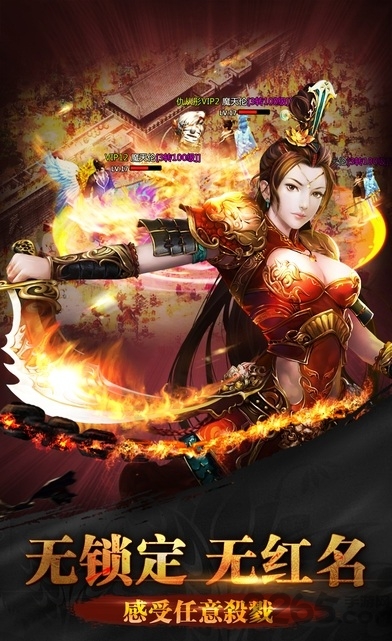 自由PK、死亡掉落装备、练级打宝、行会战与万人激情皇宫攻城战。