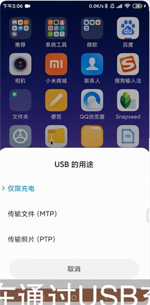 首先使用数据线将小米手机和电脑连接,此时在通知栏界面会出现一个提示【正在通过USB充电】,然后点击此选项,接着根据需要将USB调试模式设置为【传输文件】或者【传输照片】即可。