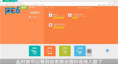首先在浏览器地址栏输入自家品牌路由器的IP地址,这里以TP-LINK路由器为例,进入登录页面后输入管理员密码完成登录,初始密码一般在路由器底部,或是初次登录时自己设置的登录密码,进入路由器设置页面后点击底部【设备管理】,此时就可以看到自家路由器的连接人数了。