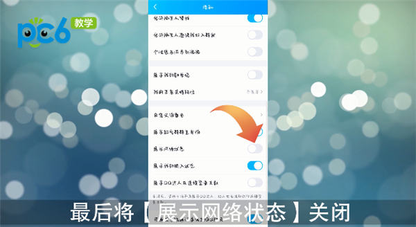 最后将【展示网络状态】关闭,就能显示【手机在线】了,不再显示网络状态。