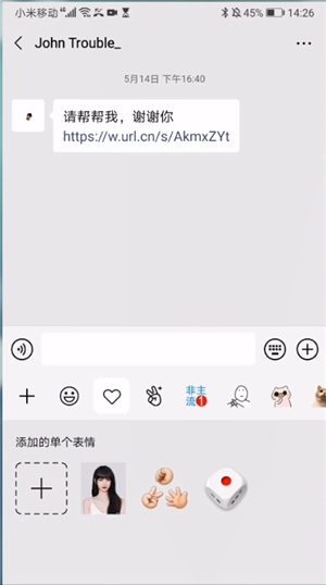 本期视频是由华为mate30手机、EMUI10.1.0系统、微信7.0.18版本录制的。打开微信app,点击进入聊天页面,点击表情选项,依次点击右侧爱心-加号,在添加的单个表情页面点击加号,选择需要添加的图片,再点击确认即可。