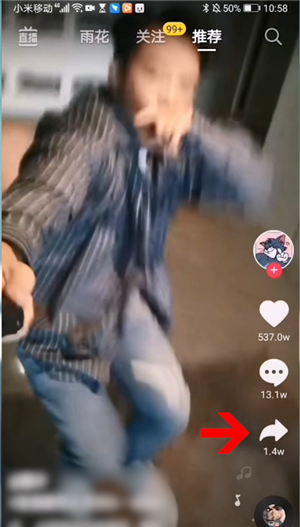 打开抖音短,在首页找到需要分享的,点击分享图标,