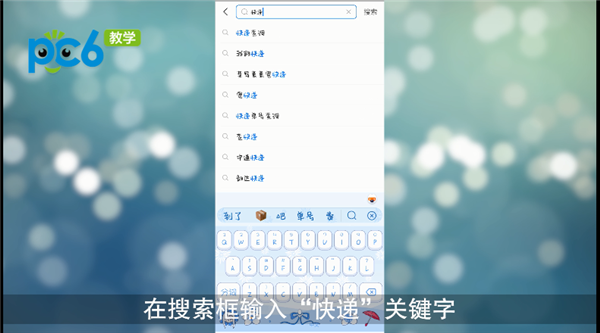 01、打开支付宝,在搜索框输入“快递”关键字,