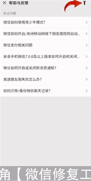 接着点击【帮助与反馈】,点击右上角【微信修复工具】图标,