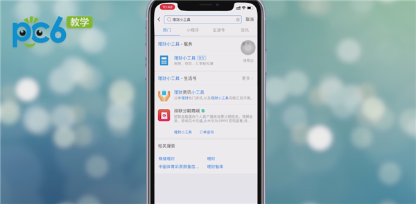 打开支付宝,在搜索上方搜索【理财小工具】;