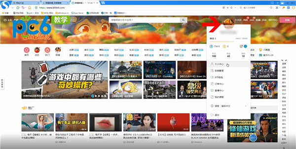 在百度上搜索哔哩哔哩,点击进入网址登录,把鼠标移动到自己的头像上,点击个人中心,