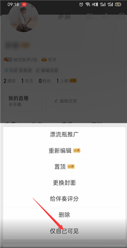 接着选择仅自己可见,就会提示你这是在加锁歌曲,加锁后公开作品就会变成私密作品,