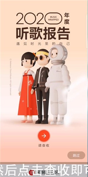 首先打开【网易云音乐】客户端,此时就会显示“2020年度听歌报告”,然后点击查收即可;