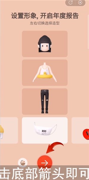 然后根据页面提示设置你的形象,设置完成后点击底部箭头即可查看年度报告。