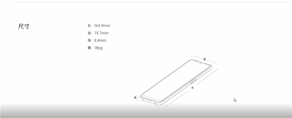 长163.9mm,宽:75.7mm,厚:8.4mm 重:186g