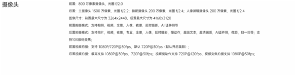 后置1300万+200万+200万像素摄像头,前置1600万像素摄像头
