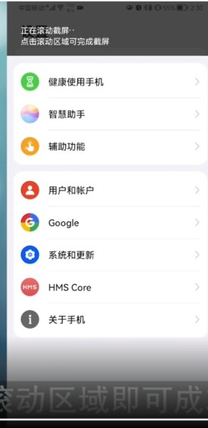 4、待截取到需要的内容之后,点击滚动区域即可成功截屏。