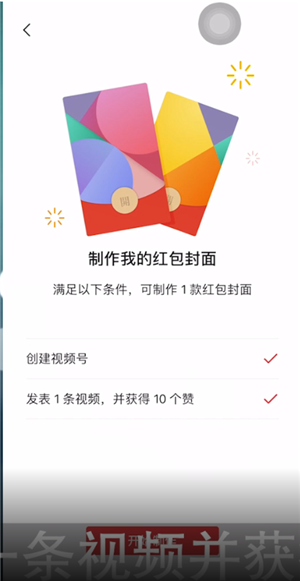 这时页面会提示创建号,再发表一条并获得十个赞即可制作一款红包封面,