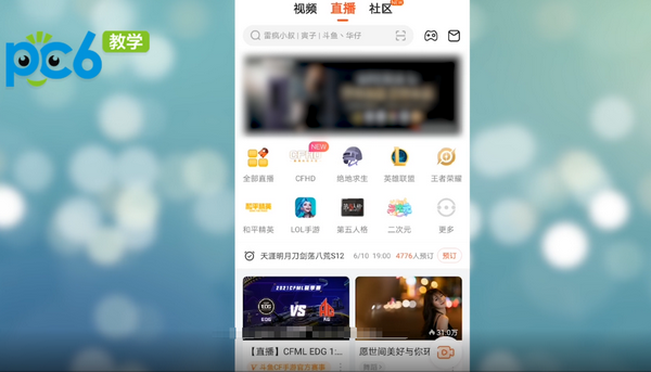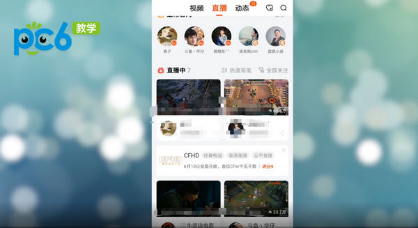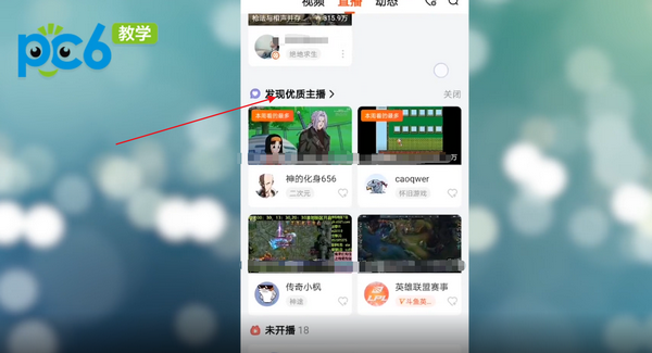 第二个区域是直播中的主播,在这个区域内可以查看自己关注了正在直播的主播。