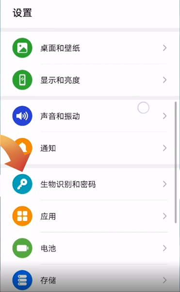 如果想要设置华为的密码的话,首先打开手机桌面的设置功能,在设置页面点击生物和密码功能,