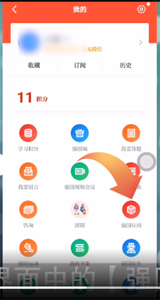 2.进入到我的界面后,找到并点击界面中的【强国应用】选项。