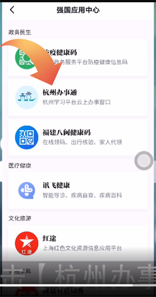 3.在强国应用中心里找到并点击【杭州办事通】,再点击【快速找空房】即可。