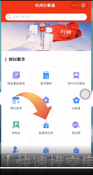 3.点击界面中的【杭州办事通】,点击快速找空房即可。