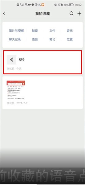 4、点击收藏,找到之前收藏的语音,点击进入;