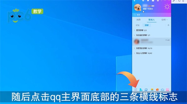 1、成功登录电脑qq,随后点击qq主界面底部的三条横线标志;