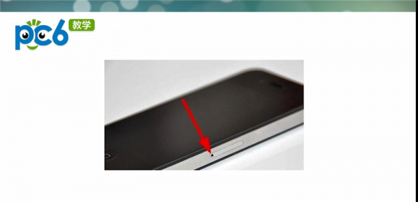 1.在拿到手机后,先观察手机四周,这时即可在手机的右侧可以看见一个小小的针孔,接下来使用购买手机时附赠的卡槽针插入针孔,