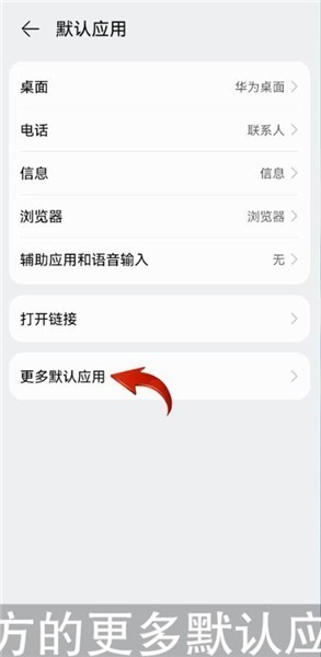 第二步:点击上方的默认应用选项,点击下方的更多默认应用选项,