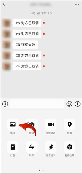 接着点击页面右下角的【+】按钮,此时在弹出的功能栏中,长按【相册】图标,