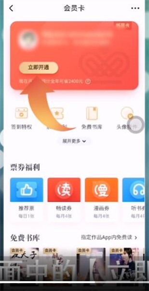 3.进入到会员卡界面后,点击界面中的【立即开通】。