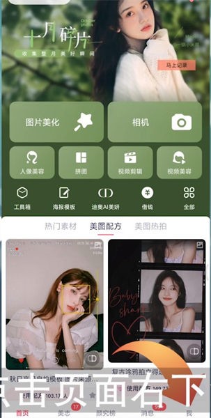 1、打开美图秀秀app,随后点击页面右下角的我;