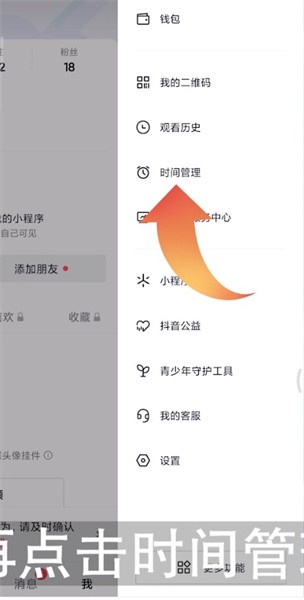 2、在个人主页右上角点击三条横线,再点击时间管理;