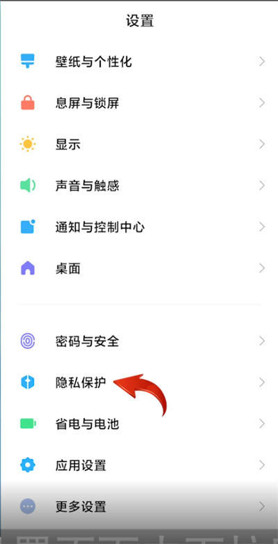 1.小米手机安装未知应用需要在手机中设置手机应用的权限,在手机中点击设置选项,随后在设置页面中下拉隐私保护。