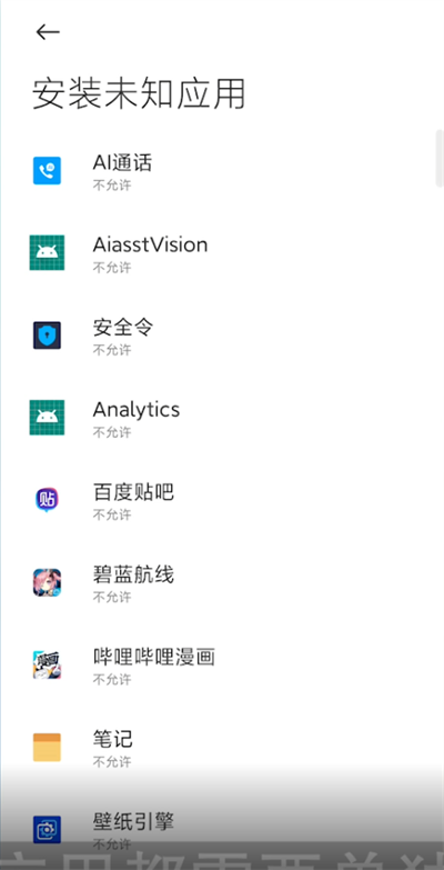 3.再在特殊权限设置中点击安装未知应用,因为每个应用都需要单独设置权限,进入需要设置的应用页面并勾选允许安装未知应用即可。不过小米允许安装未知应用可能会让手机受到安全威胁,所以安装第三方软件时还是要谨慎。