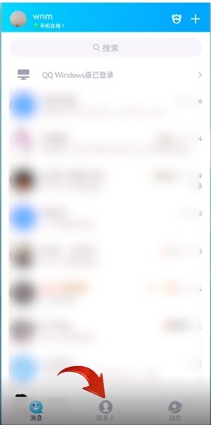 1、打开qq然后点击下方菜单之中的联系人进入。