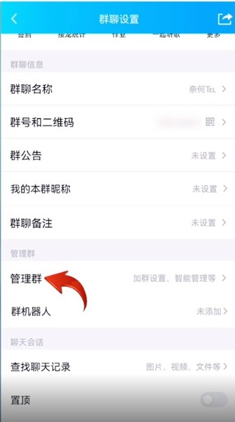 3、在群聊之中点击三个横线进入设置然后点击管理群进入。