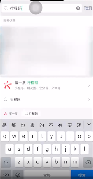 第一步:首先打开微信app,点击顶端的搜索栏,这时输入行程码字样,