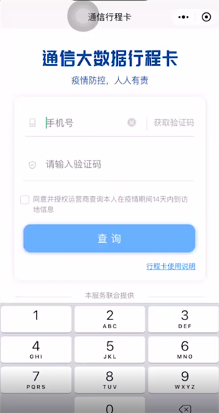 输入家人手机号,再点击获取验证码,输入验证码之后再点击查询即可获取行程码了。