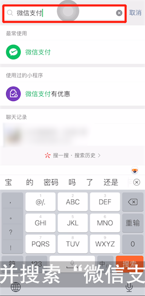 第一步:打开微信客户端,点击上方搜索栏,输入并搜索“微信支付”,