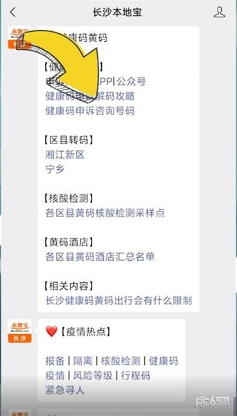 输入并发送【黄码】,点击【健康码申诉咨询号码】,就可以查看详情了。