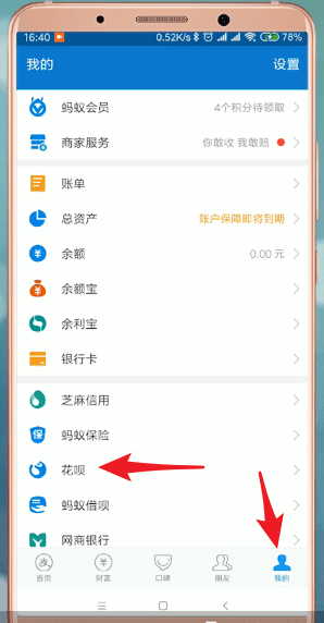 进入支付宝App【我的】-【花呗】;