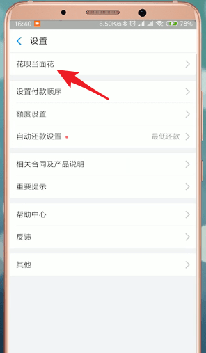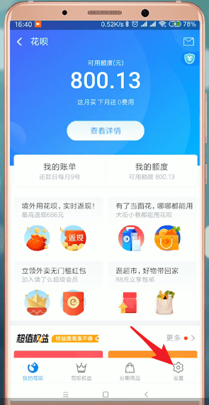 点击右下方【设置】,找到【花呗当面花】即可进入“花呗当面花”页面;