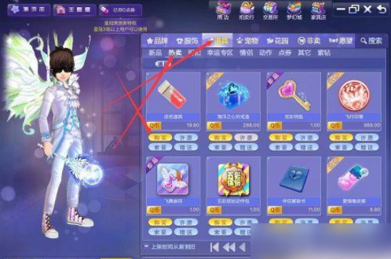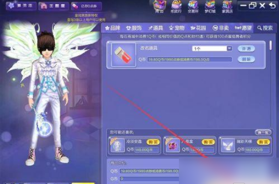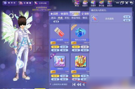 2.点击“道具”选项卡,然后点击“热卖”,之后再点击”改名道具“的购买。